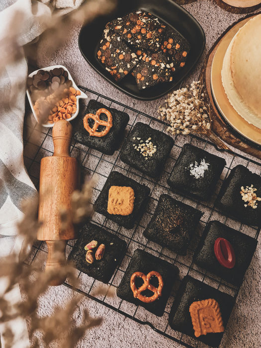 I'm known for my rich, creamy, melt-in-your-mouth Mr. Cheesecake, inspired by the luscious Tokyo-style bake, but my all-time bestsellers are the ultra-decadent blackout brownies—deep, fudgy, and overflowing with intense chocolate goodness. For those who crave the same indulgent flavor with an irresistible crunch, the blackout brittle delivers a caramelized, nutty, chocolatey snap in every bite. And if you’re after the perfect bite-sized treat, my premium cookies are packed with pure indulgence. Perfect for picnics, birthday parties or even Netflix time.